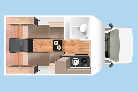 | Sitzplätze | 2 vorne Durchgang Fahrerkabine zu Wohneinheit |
