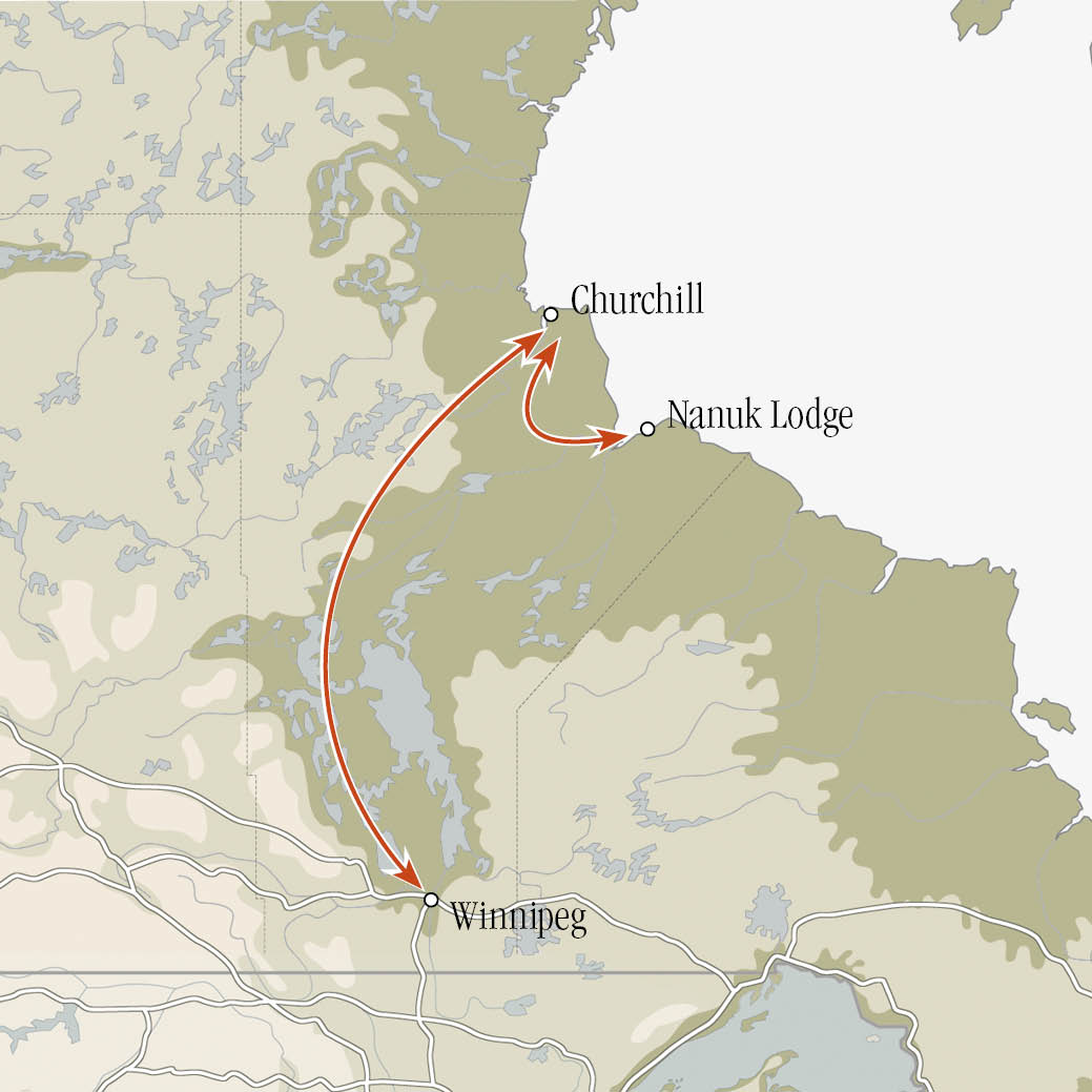Ihre Reise zur Lodge beginnt mit einem Flug von Churchill über den Wapusk-Nationalpark und die historische York Factory, wo Bären unter Ihnen wie Pinselstriche vor der Landschaft auftauchen können. Doch erst in Nanuk, offenbart sich das wahre Ausmass dieser Wildnis. Hier schafft das Zusammenspiel der Ökosysteme ein Paradies für Fotografen – Eisbären, die sich entlang der Küste bewegen, Wölfe, die wie Geister durch die Waldränder huschen, und Elche, die sich vorsichtig vor ihren Feinden in Sicherheit bringen.