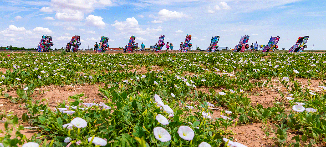 Weiter durch die Great Plains geht es heute in den Lone Star State - Texas. Auf dem Weg nach Amarillo sollten Sie einen Zwischenstopp in der Stadt Shamrock einlegen, um das U-Drop-Inn Restaurant and Service Station aus dem Jahr 1936 und das Pioneer West Museum im historischen Reynolds Hotel zu besuchen und einen Einblick in das Leben in dieser Gegend zu erhalten, als die Route 66 noch die wirkliche „Mother Road” war.